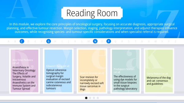 In this module, we explore the core principles of oncological surgery, focusing on accurate diagnosis, appropriate surgical planning, and effective tumour resection. Margin selection, staging, pathology interpretation, and adjunct therapies influence outcomes, while recognising species- and tumour-specific considerations and when specialist referral is required.