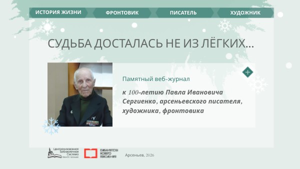 к 100-летию Павла Ивановича Сергиенко, арсеньевского писателя, художника, фронтовика