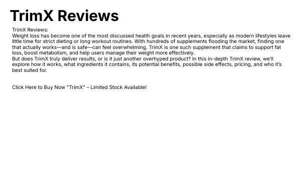 TrimX Reviews: Weight loss has become one of the most discussed health goals in recent years, especially as modern lifestyles leave little time for strict dieting or long workout routines. With hundreds of supplements flooding the market, finding one that actually works—and is safe—can feel overwhelming. TrimX is one such supplement that claims to support fat loss, boost metabolism, and help users manage their weight more effectively. But does TrimX truly deliver results, or is it just another overhyped product? In this in-depth TrimX review, we’ll explore how it works, what ingredients it contains, its potential benefits, possible side effects, pricing, and who it’s best suited for. Click Here to Buy Now "TrimX" – Limited Stock Available!