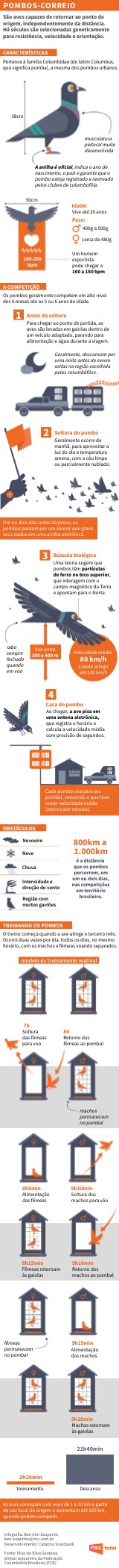 São aves capazes de retornar ao ponto de origem, independentemente da distância. Há séculos são selecionadas geneticamente para resistência, velocidade e orientação.