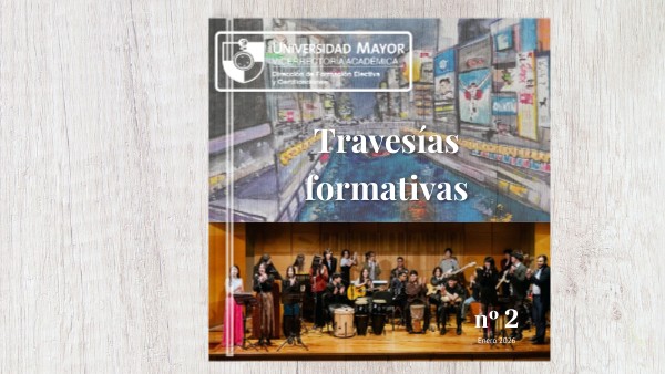 Con orgullo, presentamos el segundo volumen de Travesías Formativas, dossier de trabajos desarrollados en los cursos de Formación Electiva durante el segundo semestre de 2025 en la Universidad Mayor. Esta recopilación busca ofrecer una mirada a las múltiples experiencias de aprendizaje que emergen en nuestros espacios, los cuales promueven la exploración, el diálogo interdisciplinario y la reflexión crítica desde diversas perspectivas. Creemos que este compromiso con la calidad y la innovación educativa es la razón por la cual hemos sido reconocidos con los mejores resultados en la evaluación docente. Cada uno de los trabajos aquí incluidos representa una muestra del compromiso, la curiosidad y la creatividad con que estudiantes y docentes han abordado los temas propuestos, generando conocimientos y propuestas que dialogan activamente con el entorno y los desafíos de nuestro tiempo, construyendo un horizonte de creatividad y reflexión. Invitamos a recorrer este dossier como una puerta abierta al quehacer formativo que se cultiva en los electivos, donde la formación general se despliega como una dimensión fundamental del desarrollo universitario. ¡Bienvenidos a esta travesía formativa! / Claudia Winther / Roberto Bravo/ Valentina Sanguinetti Dirección de Formación Electiva y certificaciones