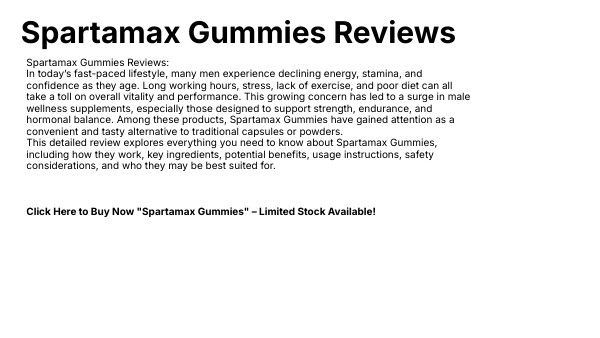 Spartamax Gummies Reviews: In today’s fast-paced lifestyle, many men experience declining energy, stamina, and confidence as they age. Long working hours, stress, lack of exercise, and poor diet can all take a toll on overall vitality and performance. This growing concern has led to a surge in male wellness supplements, especially those designed to support strength, endurance, and hormonal balance. Among these products, Spartamax Gummies have gained attention as a convenient and tasty alternative to traditional capsules or powders. This detailed review explores everything you need to know about Spartamax Gummies, including how they work, key ingredients, potential benefits, usage instructions, safety considerations, and who they may be best suited for. Click Here to Buy Now "Spartamax Gummies" – Limited Stock Available!