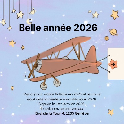 Merci pour votre fidélité en 2025 et je vous souhaite la meilleure santé pour 2026.Depuis le 1er janvier 2026, le cabinet se trouve au Bvd de la Tour 4, 1205 Genève