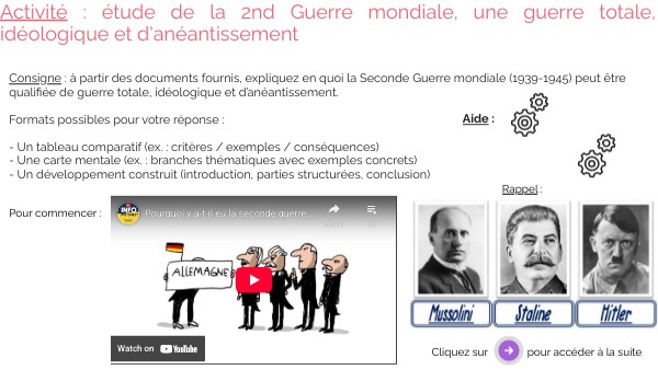 Activité : étude de la 2nd Guerre mondiale, une guerre totale, idéologique et d'anéantissement