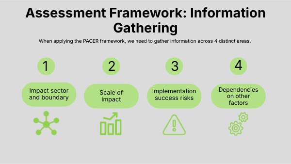 When applying the PACER framework, we need to gather information across 4 distinct areas.