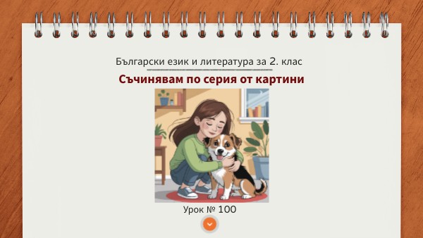 Съчинението по картинки е разказ, който ние създаваме, докато наблюдаваме една поредица от изображения, които са тематично свързани. Всяка една отделна картинка представя важна част, отделен епизод от разказваната история. Наблюдавайки детайлите, елементите, включени в картинките, ние трябва да се досетим каква случка е изобразена на тях. Важно е да се опитаме да обясним какво сме разбрали чрез думи, свързани по смисъл в изречения. Така изграждаме устен разказ. След това можем да го запишем.