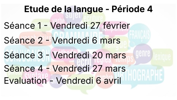 Devoirs pour vendredi 6 mars Français : Apprendre leçons G3, C4 et L4