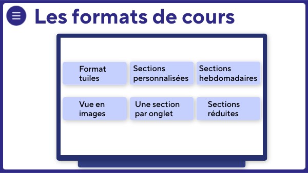 Préparez des images de mêmes dimensions pour garantir une mise en page harmonieuse. Donnez des titres explicites à vos sections. Vous pouvez aussi définir la taille des images dans l’éditeur Moodle.Format de cours
