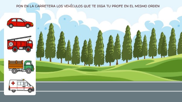 PON EN la carretera LOS vehículos QUE TE DIGA TU PROFE EN EL MISMO ORDEN