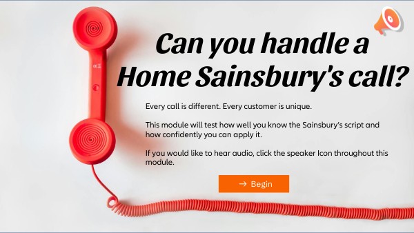 Every call is different. Every customer is unique. This module will test how well you know the Sainsbury’s script and how confidently you can apply it. If you would like to hear audio, click the speaker Icon throughout this module.