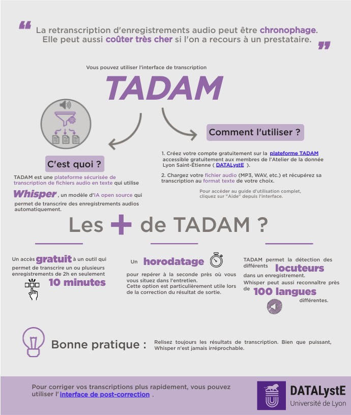 TADAM est une plateforme sécurisée de transcription de fichiers audio en texte qui utilise