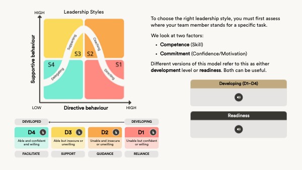 To choose the right leadership style, you must first assess where your team member stands for a specific task.