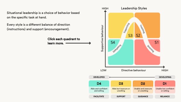 Every style is a different balance of direction (instructions) and support (encouragement).