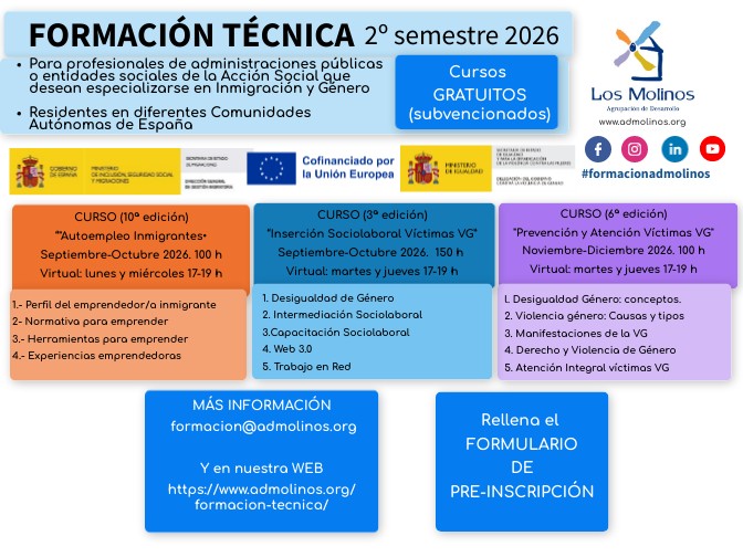 MÁS INFORMACIÓN formacion@admolinos.org Y en nuestra WEB https://www.admolinos.org/formacion-tecnica/