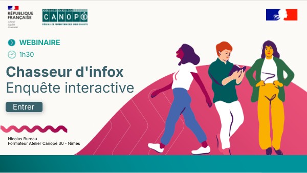 Pour compléter cette exposition, l’Atelier Canopé de Nîmes a conçu un parcours sur tablette de 6 activités, à destination des collégiens et lycéens abordant l’information et la désinformation sous différents angles. Les élèves sont invités par un journaliste, Nicolas de Roman, à réaliser un ensemble de missions (au moins une enquête et deux quiz) leur permettant de valider des badges de compétences en éducation aux médias et à l’information. Un livret pédagogique a été élaboré pour accompagner les enseignants, les animateurs et les médiateurs, en leur apportant les informations nécessaires à la correction des activités proposées.