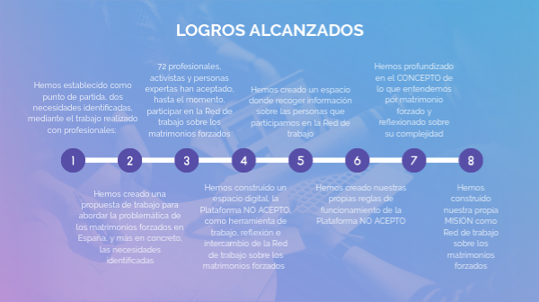Hemos construido un espacio digital, la Plataforma NO ACEPTO, como herramienta de trabajo, reflexión e intercambio de la Red de trabajo sobre los matrimonios forzados