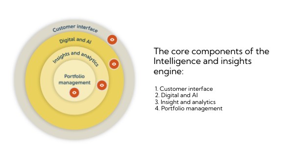1. Customer interface 2. Digital and AI 3. Insight and analytics 4. Portfolio management