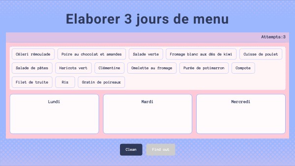 Elaborer 3 jours de menu