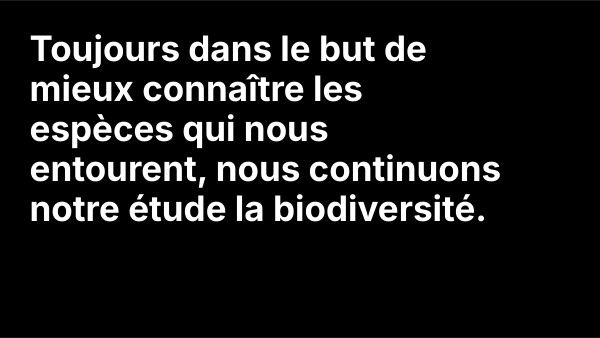 Toujours dans le but de mieux connaître les espèces qui nous entourent, nous continuons notre étude la biodiversité.
