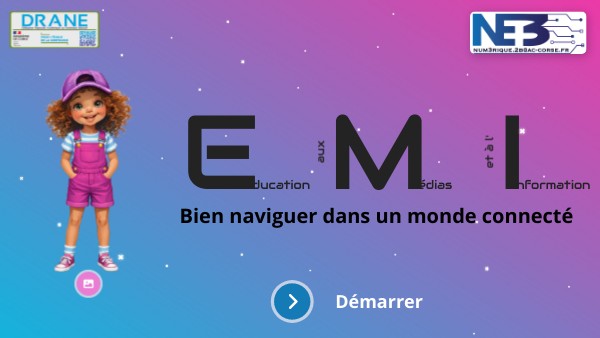 Bonjour , je m'appelle ÉMI ! Ensemble, nous allons parler d'éducation aux médias et à l'information et plus particulièrement des usages d'Internet. Je te propose de commencer tout de suite. Rendez-vous à la page suivante...