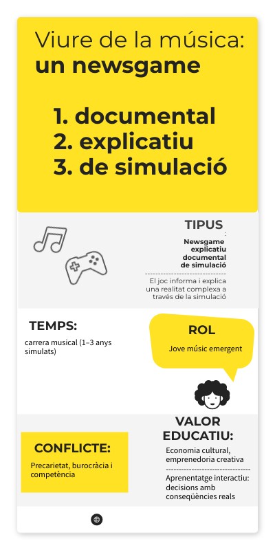 Viure de la música: un newsgame 1. documental 2. explicatiu 3. de simulació