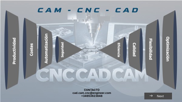 PROGRAMACIÓN CAM, 3/4/5 EJES MEJORA Y OPTIMIZACIÓN DE PROGRAMAS CNC CALIDAD DE ACABADOS Eficiencia y ahorro DE recursos Flexibilidad EN CAMBIO, ADAPTACIÓN y ejecución PRODUCCIÓN DESDE DISEÑO HASTA FABRICACIÓN CNC Comodidad para empresAS