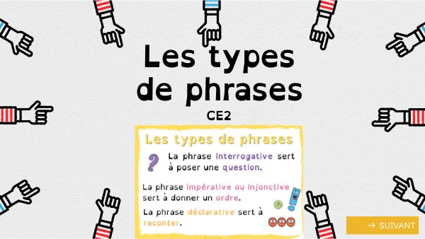 - Réinvestir les connaissances sur les types de phrases dans une situation ludique et interactive.