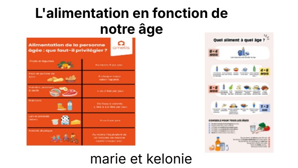 Les besoins alimentaires évoluent avec l'age. Une alimentation variée et équilibrée permet de grandir, d'avoir de l'énergie et de rester en bonne santé tout au long de la vie.