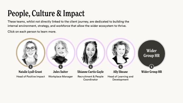 These teams, whilst not directly linked to the client journey, are dedicated to building the internal environment, strategy, and workforce that allow the wider ecosystem to thrive.