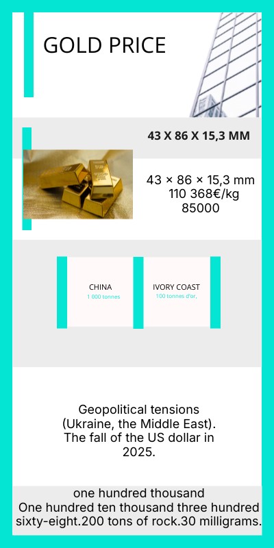 Today, I’m going to talk about gold, and especially what happened to gold in 2025.Gold is one of the most important metals in the world. People have used it for thousands of years, and even today, it is still a symbol of power, money, and security. But in 2025, something very special happened: the price of gold exploded.The first important thing to remember is that the price of gold went up by 46.3%.This is a huge rise. Today, one kilogram of gold costs 110,368 euros.To give you an idea, one kilogram is about the weight of a bottle of water.So imagine holding a simple water bottle…which costs 100000 eurosBut why did the price go up so much?There are two main reasons.First, the US dollar fell in 2025. When the dollar becomes weaker, investors buy gold to protect their money.Second, there were many geopolitical tensions around the world: in Ukraine, in the Middle East, and in the South China Sea.When the world feels dangerous, people buy gold because it is considered a “safe property”.So the price increased very fast.Another important thing in 2025 was the discovery of new gold deposits.Two big discoveries happened: one in China and one in Côte d’Ivoire.These new mines could produce a lot of gold in the future.For China, it means more economic power.For Côte d’Ivoire, it could bring jobs and development, but also environmental risks.Mining gold is not easy. To extract one kilogram of gold, companies sometimes need to process up to 200 tons of rock.This can pollute rivers and destroy forests.So gold is valuable, but it also has a cost for nature.Gold is not only used for jewelry.It is also very important in technology.Every smartphone contains a small amount of gold, around 30 milligrams.It’s not much, but when you think about the billions of phones in the world, it becomes a lot.Gold is also used in computers, satellites, electric cars, and medical equipment.Without gold, many modern technologies would not work properly.Another interesting fact is that a big part of the gold we use today comes from recycling.Around 25 to 30 percent of gold each year is recycled from old jewelry or electronic devices.Recycling gold is much better for the environment than mining it.In the future, recycling will probably become even more important.To finish, gold is not just a metal.It is a symbol, a technology resource, a financial protection, and sometimes a problem for the environment.In 2025, the price of gold reached record levels because the world was unstable and people were afraid of losing money.New gold deposits were discovered, and technology continued to depend on gold.So even today, gold remains one of the most important materials on Earth.Thank you for listening.