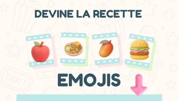 Grace aux émoji sur la page devine la rectte qui pourrait contenir ces ingredients , inscrit ensuite ta réponse en bas ( Attention à utiliser le bon orthographe )