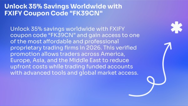 Unlock 35% savings worldwide with FXIFY coupon code “FK39CN” and gain access to one of the most affordable and professional proprietary trading firms in 2026. This verified promotion allows traders across America, Europe, Asia, and the Middle East to reduce upfront costs while trading funded accounts with advanced tools and global market access.
