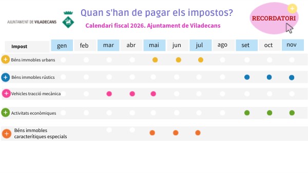 Calendari fiscal 2026. Ajuntament de Viladecans