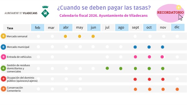 Calendario fiscal 2026. Ayuntamiento de Viladecans