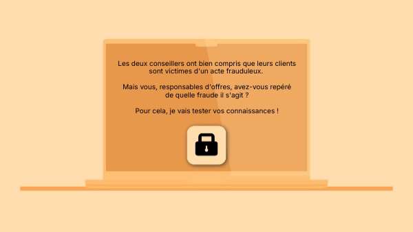 Les deux conseillers ont bien compris que leurs clients sont victimes d'un acte frauduleux. Mais vous, responsables d'offres, avez-vous repéré de quelle fraude il s'agit ? Pour cela, je vais tester vos connaissances !