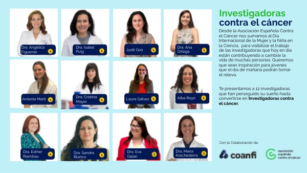 Desde la Asociación Española Contra el Cáncer nos sumamos al Día Internacional de la Mujer y la Niña en la Ciencia, para visibilizar el trabajo de las investigadoras que hoy en día están contribuyendo a cambiar la vida de muchas personas. Queremos que sean inspiración para jóvenes que el día de mañana podrán tomar el relevo.