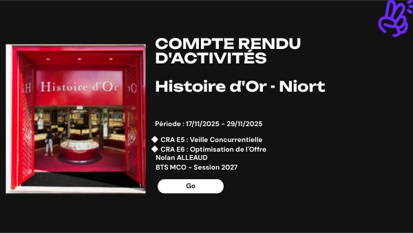 COMPTE RENDU D'ACTIVITÉS Histoire d'Or - Niort