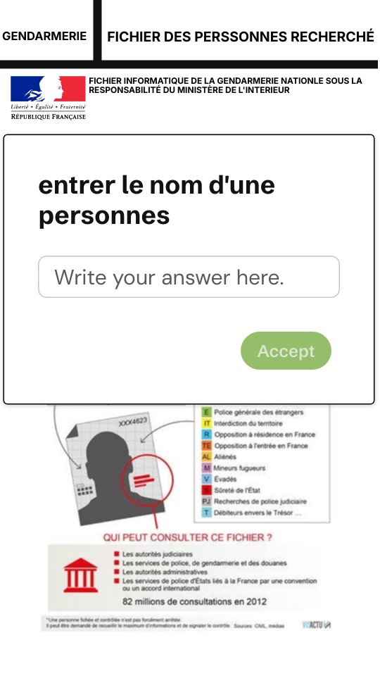 FICHIER INFORMATIQUE DE LA GENDARMERIE NATIONLE SOUS LA RESPONSABILITÉ DU MINISTÈRE DE L'INTERIEUR