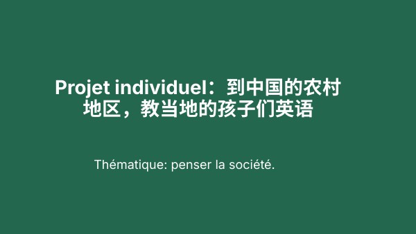 Projet individuel:到中国的农村地区,教当地的孩子们英语