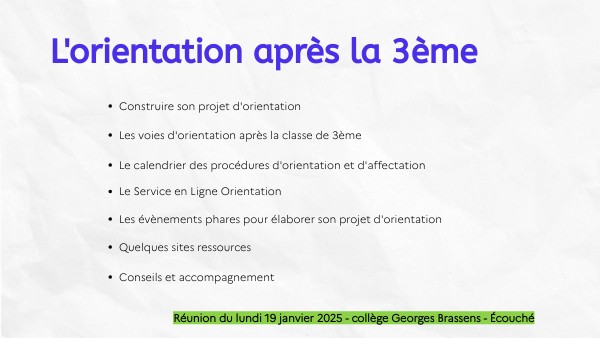 Réunion du lundi 19 janvier 2025 - collège Georges Brassens - Écouché