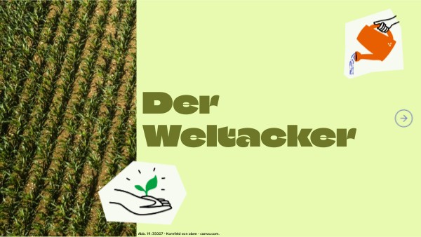 Stell dir vor, die gesamte Ackerfläche der Erde wird gerecht aufgeteilt, dann stehen dir 2000 m² zu – nicht mehr und nicht weniger. Das