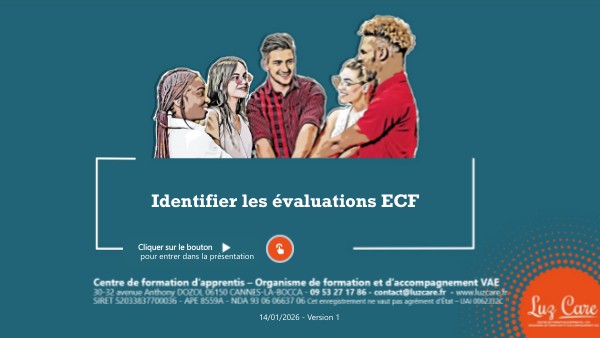 À l'issue du module, l’apprenant sera capable de ...Identifier le rôle des évaluations ECF dans un parcours certifiant Comprendre l’utilisation et le remplissage du livret ECF Expliquer le rôle du formateur dans le bilan pédagogique d’évaluation Identifier le bilan pédagogique comme outil de traçabilité et de qualité de la formation