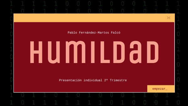 La humildad es una valor importante en mi vida, desde que tengo consciencia he tratado de entrenar mi humildad, de vivir todos los días de manera humilde, por que me dí cuenta en su día de que cuando estas con gente humilde, estas agusto, y desde ese momento he amoldado mmi forma de ser a la humildad y el respeto