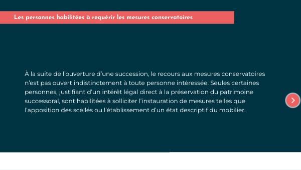 À la suite de l’ouverture d’une succession, le recours aux mesures conservatoires n’est pas ouvert indistinctement à toute personne intéressée. Seules certaines personnes, justifiant d’un intérêt légal direct à la préservation du patrimoine successoral, sont habilitées à solliciter l’instauration de mesures telles que l’apposition des scellés ou l’établissement d’un état descriptif du mobilier.