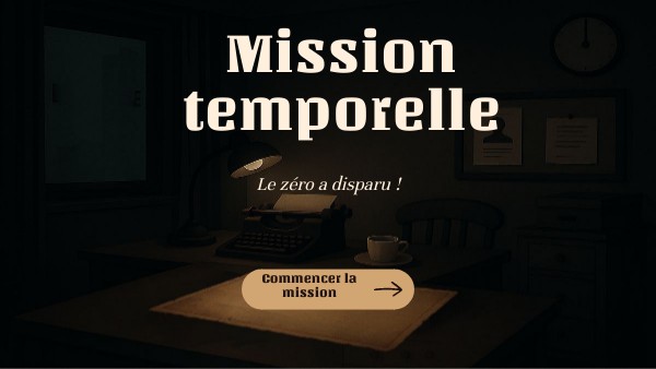 Une faille temporelle a effacé le zéro de l'Histoire : sans lui, les mathématiques moderne sont condamnées. Vous êtes explorateurs du temps Votre mission : à travers les civilisations, résoudre des énigmes et redonner sa place au zéro
