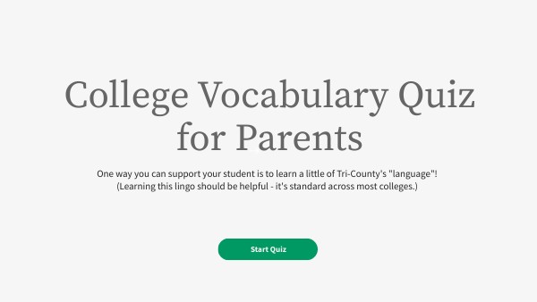 Thanks for taking the time to learn a little of Tri-County's "language"! This will help you help your student to be successful!