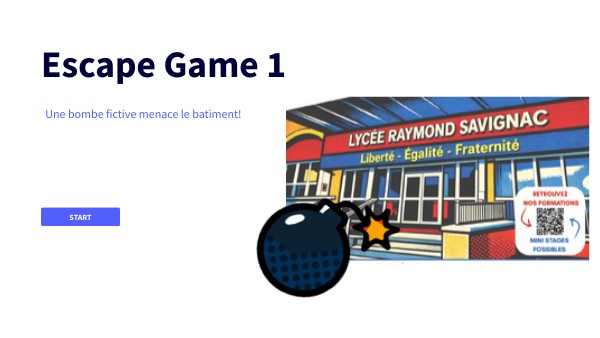 Vous avez été kidnappés par le Dr Kryptos, vous apprenez qu’une bombe vient d’être activée. Vous êtes une équipe d’experts , votre mission sera de désactiver le système de mise à feu avant la fin du compte à rebours (60 minutes). Pour y parvenir, vous devrez traverser plusieurs salles et résoudre des épreuves scientifiques et logiques. Chaque salle fournit un code qui permet d’ouvrir la suivante. Avancez vous en salle 305 pour trouver le premier code.