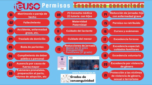 - Cuidado del cónyuge o pareja de hecho, familiar hasta el 2º grado de consanguinidad o afinidad, incluido el familiar consanguíneo de la pareja de hecho.