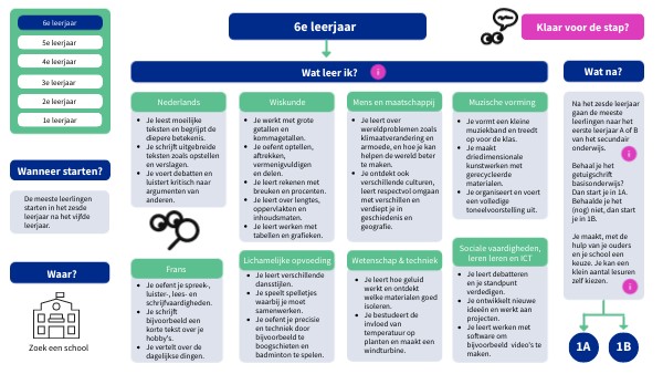 Na het zesde leerjaar gaan de meeste leerlingen naar het eerste leerjaar A of B van het secundair onderwijs. Behaal je het getuigschrift basisonderwijs? Dan start je in 1A. Behaalde je het (nog) niet, dan start je in 1B. Je maakt, met de hulp van je ouders en je school een keuze. Je kan een klein aantal lesuren zelf kiezen.