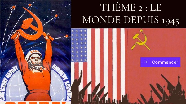 Introduction : A la fin de la Seconde Guerre mondiale en 1945, les grands vainqueurs de la guerre sont les Etats-Unis et l'URSS. Le monde se divise alors en deux blocs opposés (on parle d'un monde bipolaire) nommé . Ces derniers ne vont pas s'affronter directement mais emploient tous les moyens pour affirmer leur suprématie et étendre leur influence : c'est ce qu'on nomme la Guerre froide.